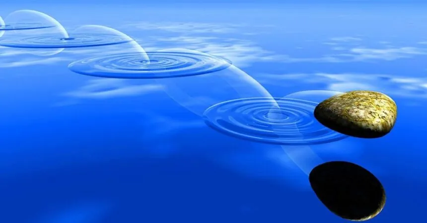 Uno de mis tíos, que de física tampoco sabía nada, poseía en cambio una habilidad notable. Lograba que los pedruscos saltaran varias veces antes de desaparecer. Cada rebote dibujaba una estela de círculos concéntricos que se expandían lentamente. Los niños quedábamos maravillados. “Los peñascazos se hunden”, nos decía. “Pero una buena piedrita, lanzada con fuerza y en el ángulo correcto, puede sobrevivir varios rebotes”.
